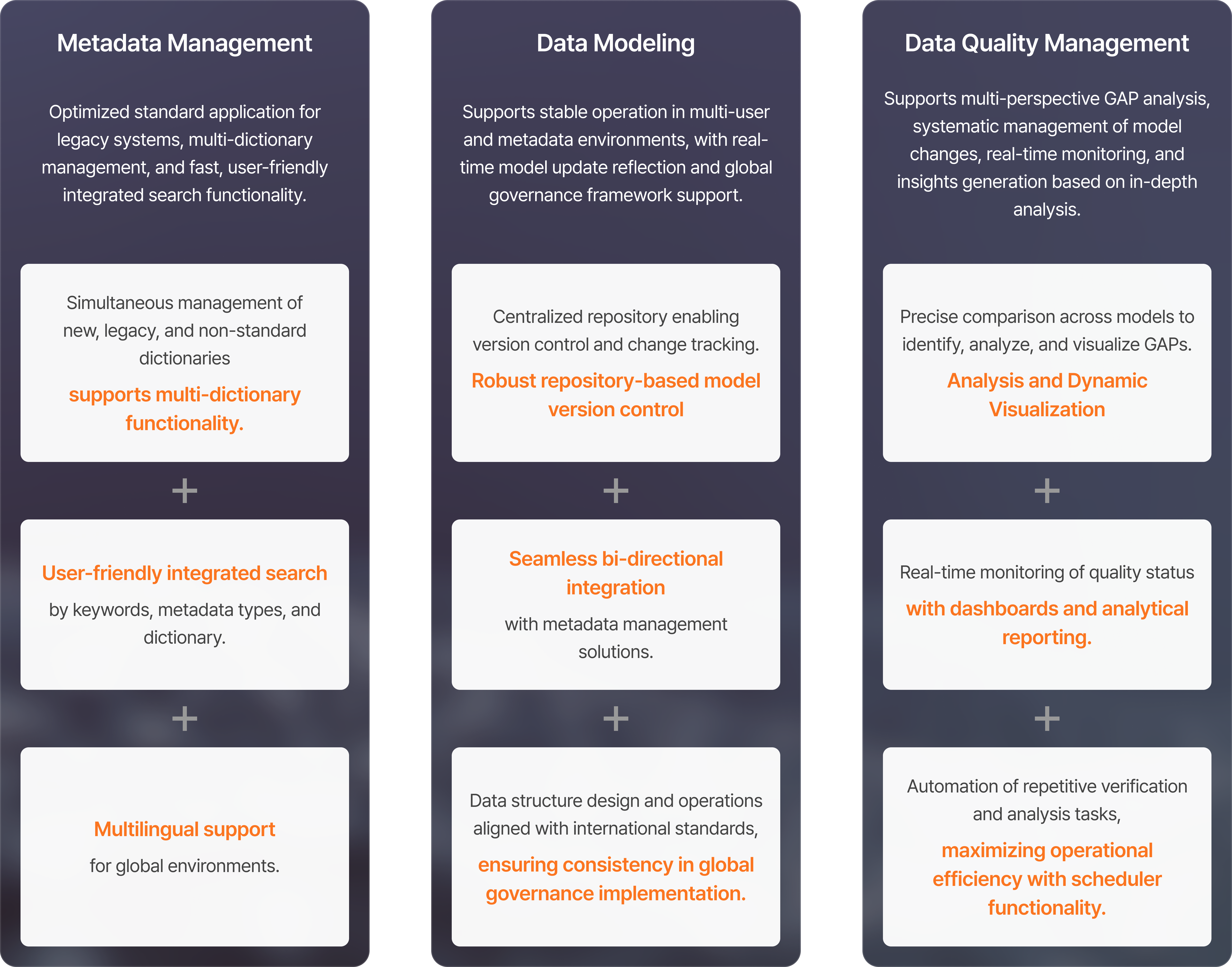 Provides user-friendly and robust solutions for metadata management, data modeling, and