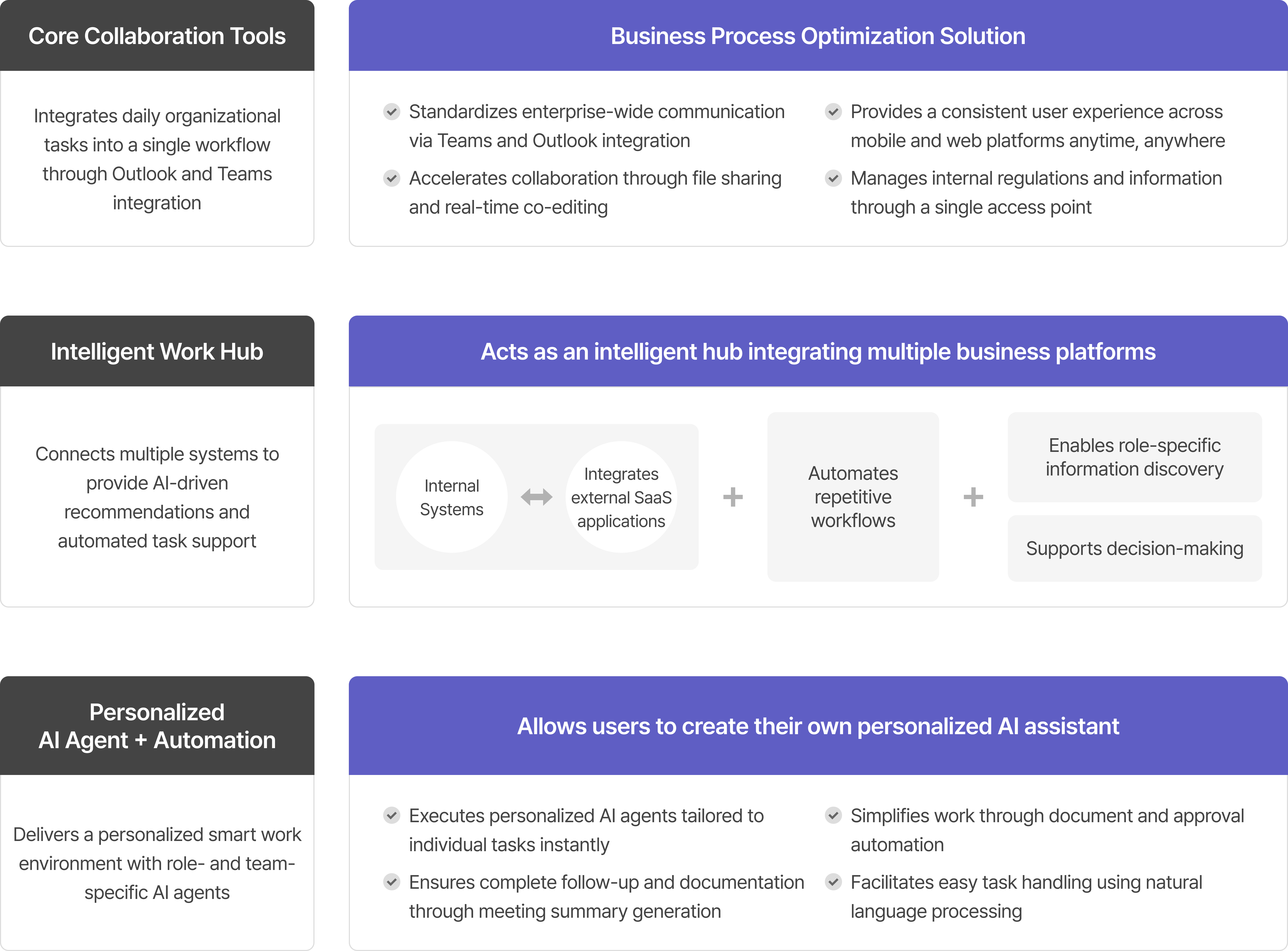 AI dashboards and meeting support features to deliver a personalized smart work environment.