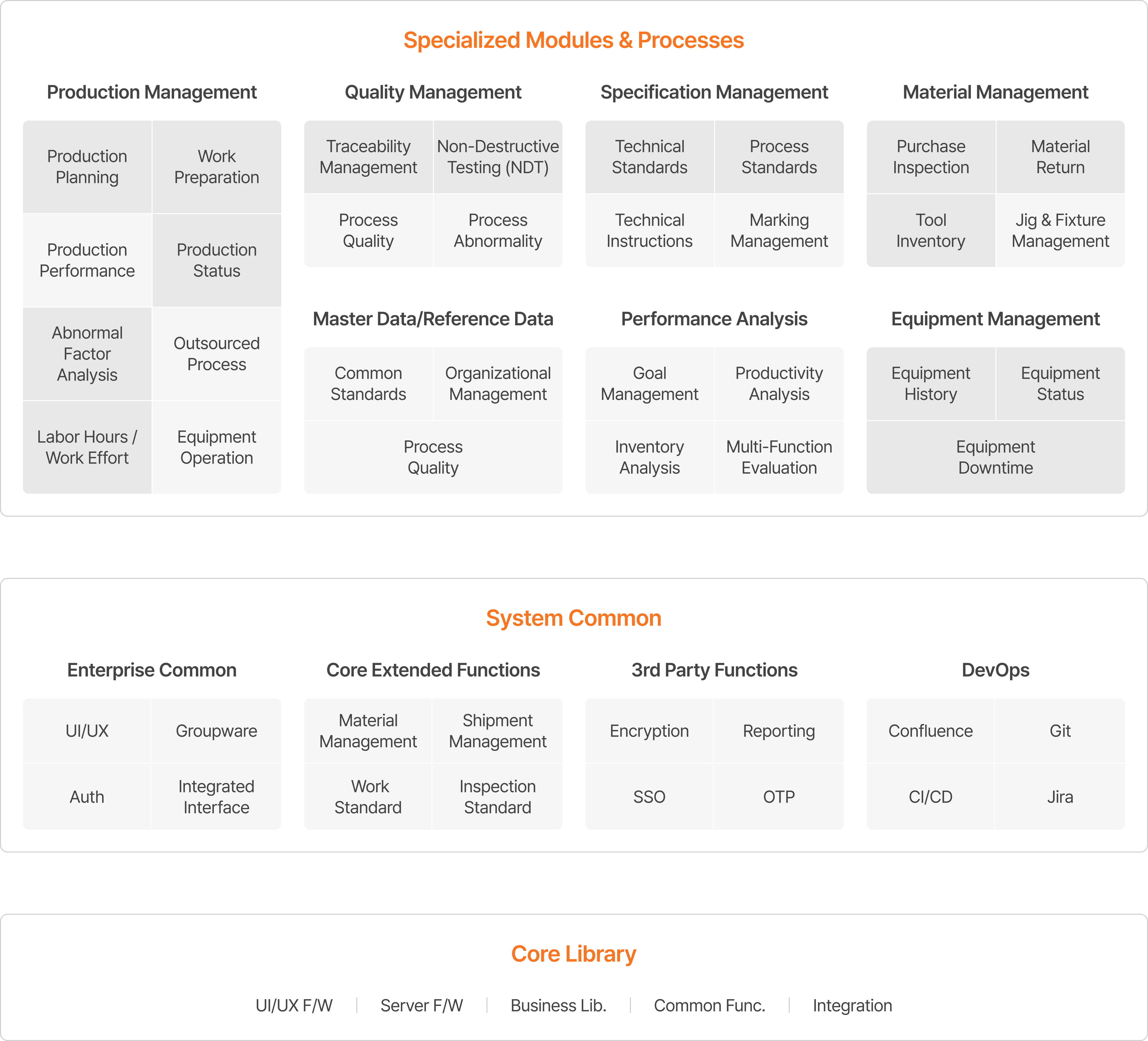 supporting customer-tailored expansions and international operations. It integrates production, quality, and process