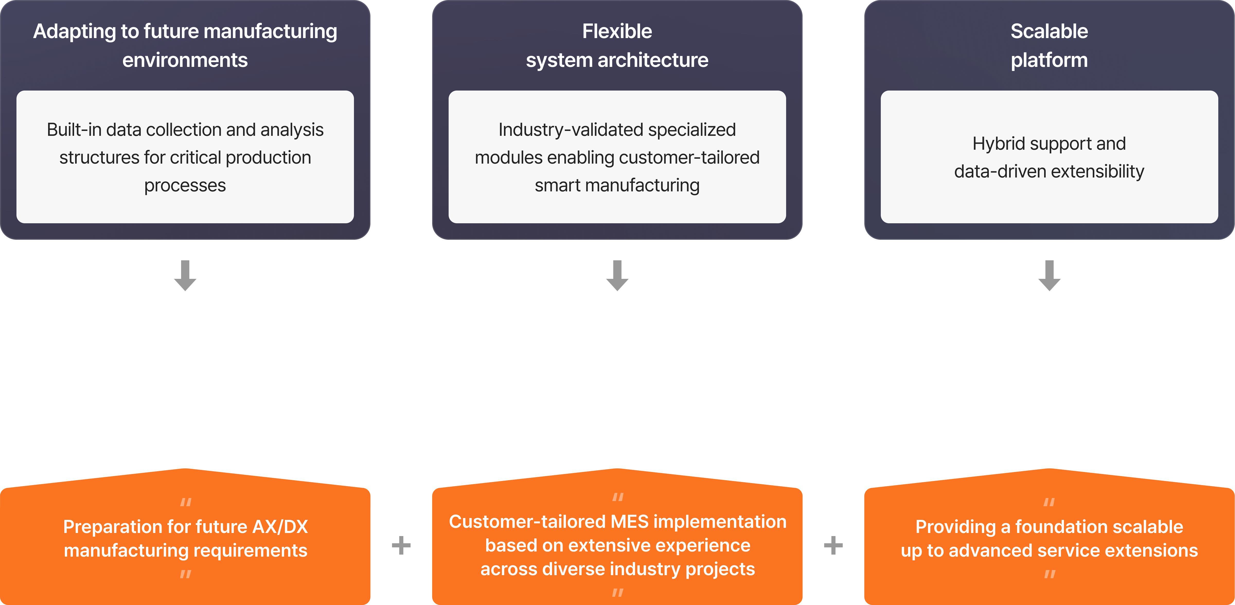 MES is a next-generation manufacturing platform designed for AX/DX scalability, targeting