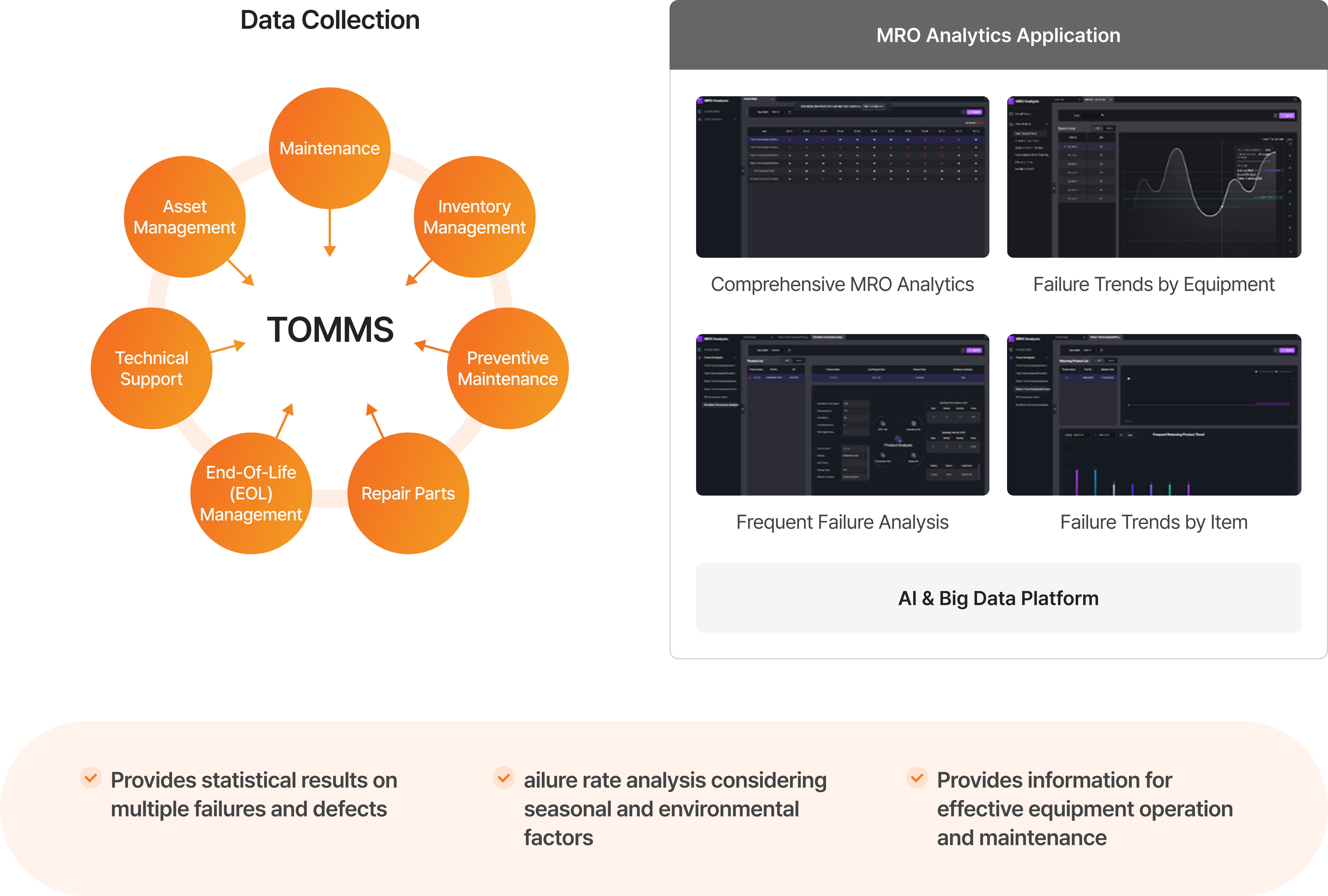 Leverages MRO data stored in TOMMS to provide insights for equipment operation and maintenance.