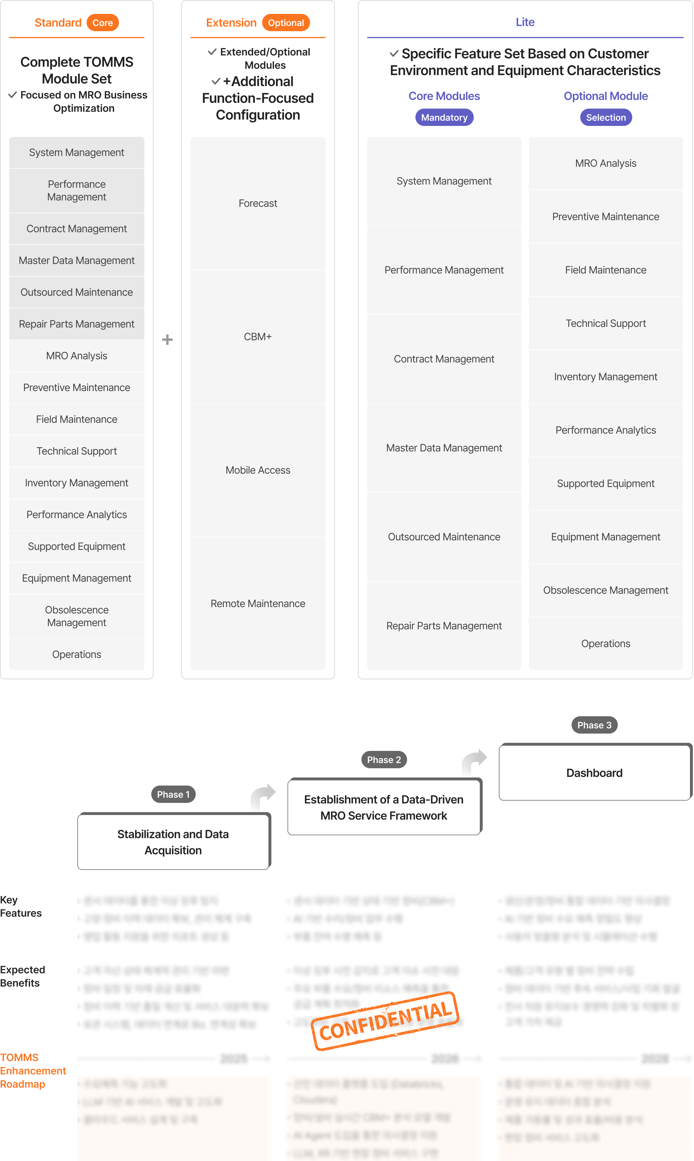 Support tailored MRO deployment through diversified TOMMS versions by