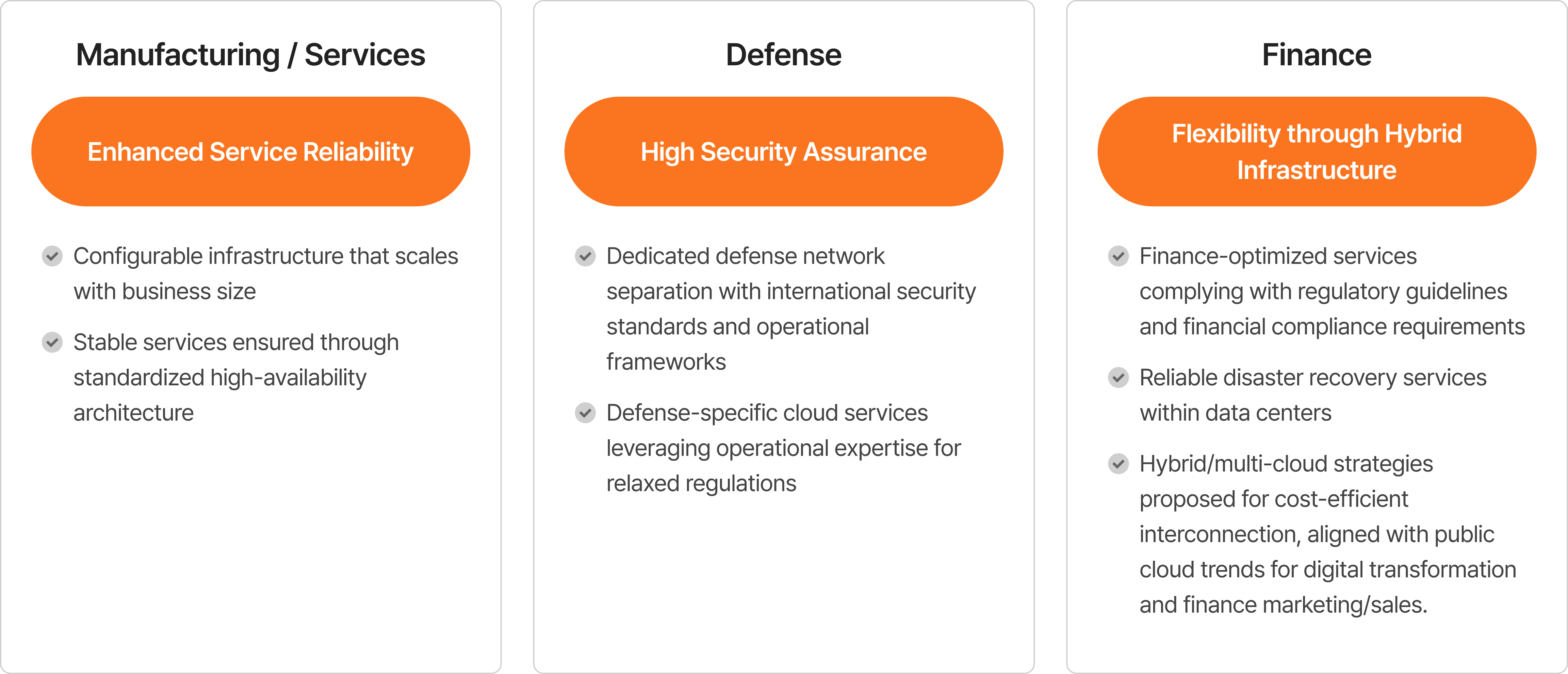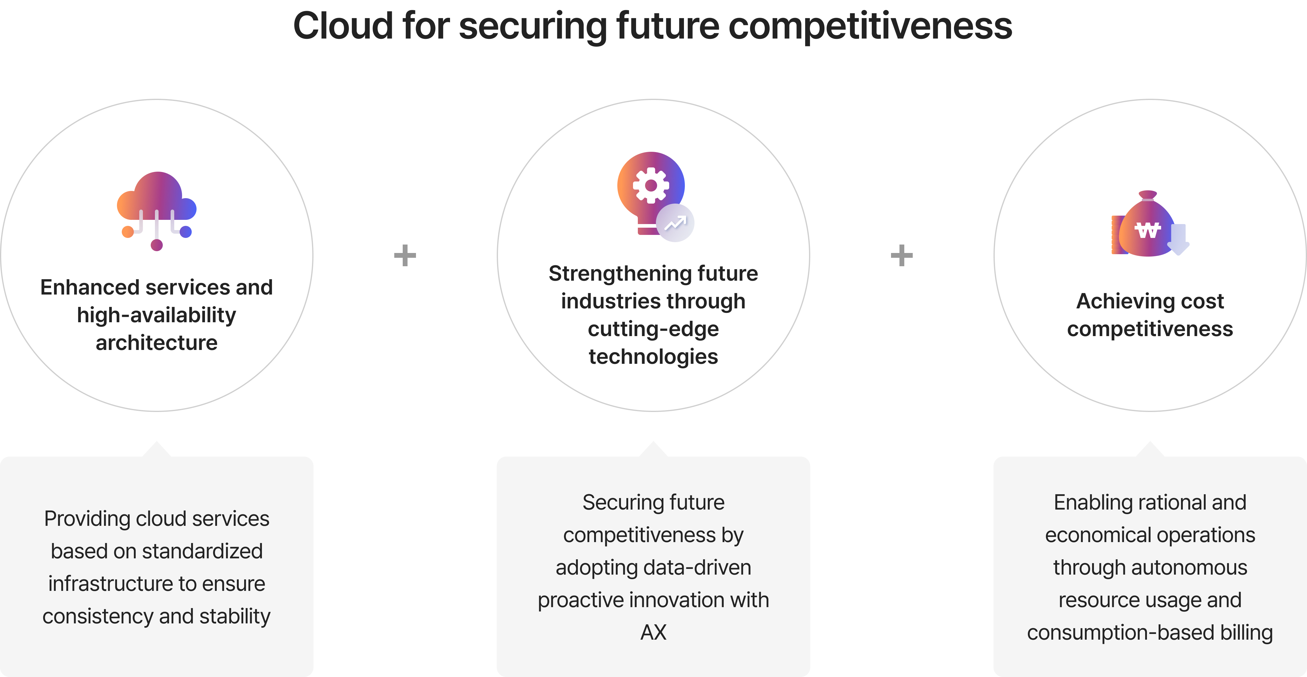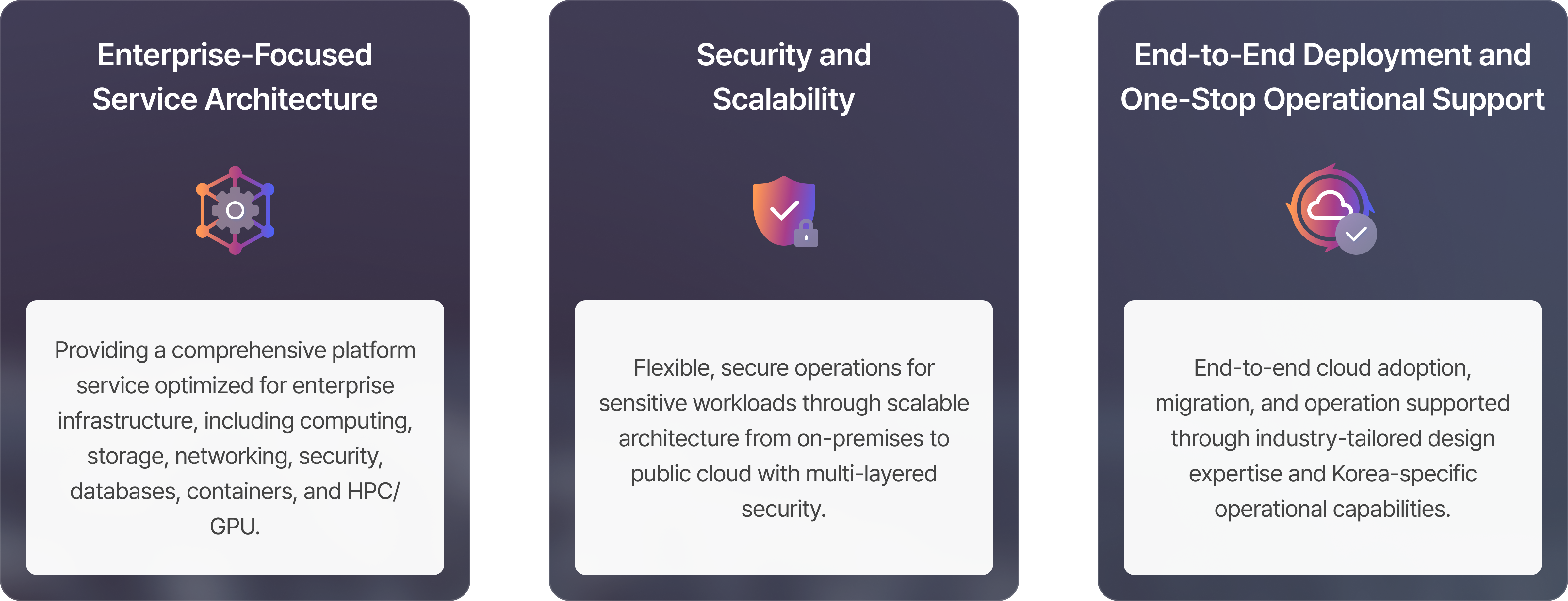 It ensures stability and reliability through a high-availability environment leveraging multiple data centers, and delivers fundamental infrastructure such as computing, storage, and networking, as well as AX infrastructure including HPC/GPU, in a service-based model.