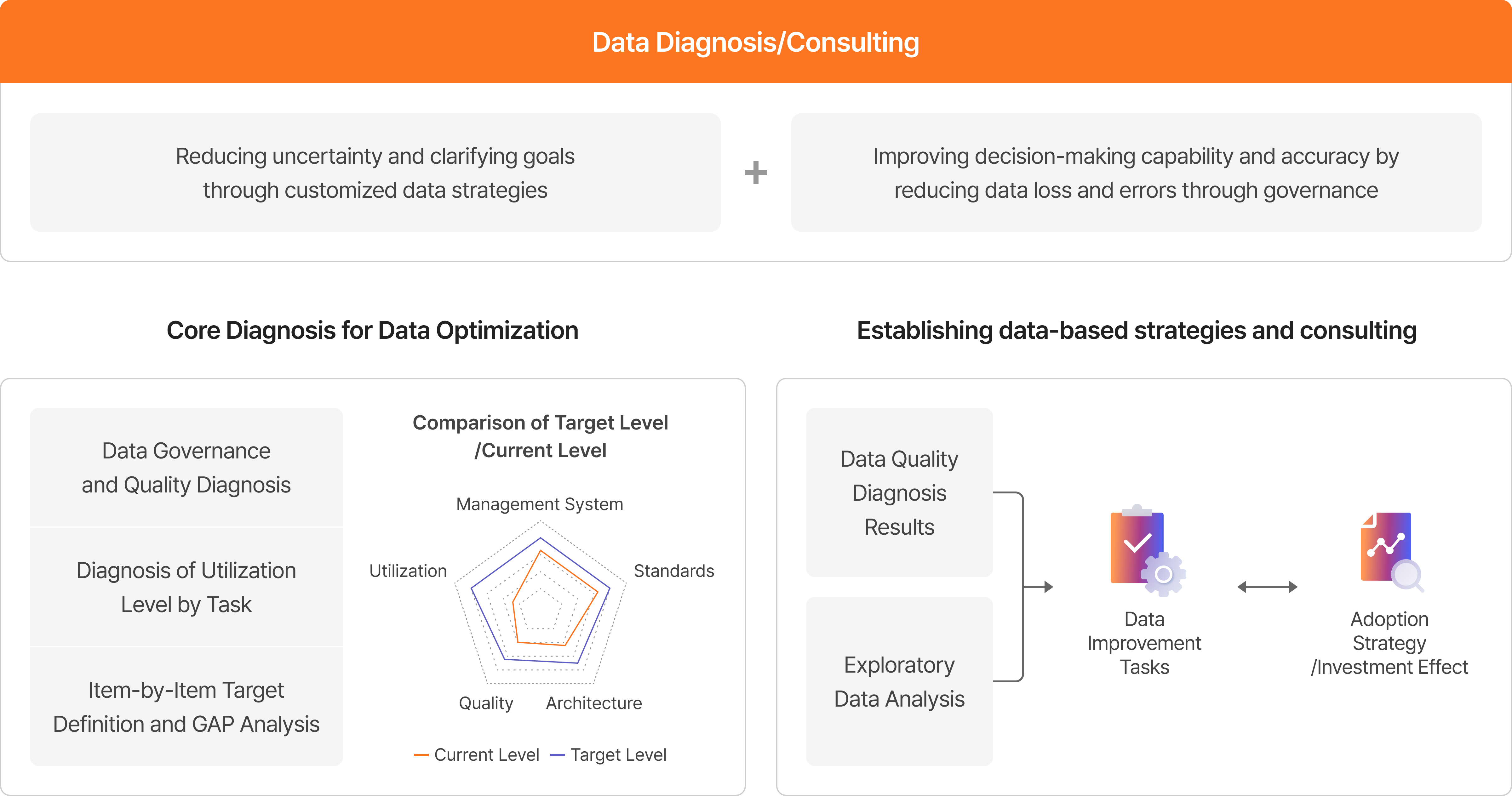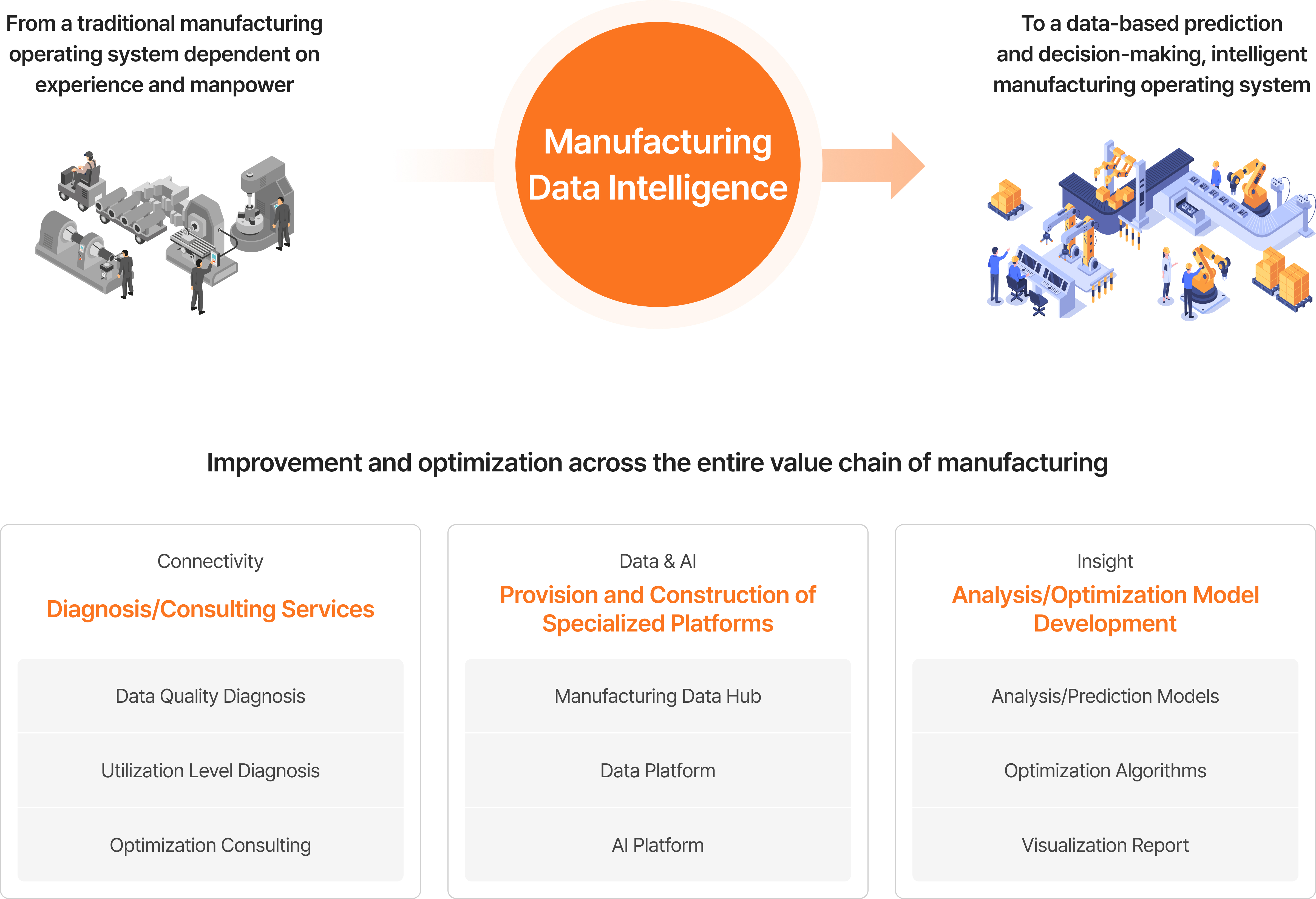 supporting data-based prediction and decision-making through data diagnosis/consulting, AI/Data platforms,