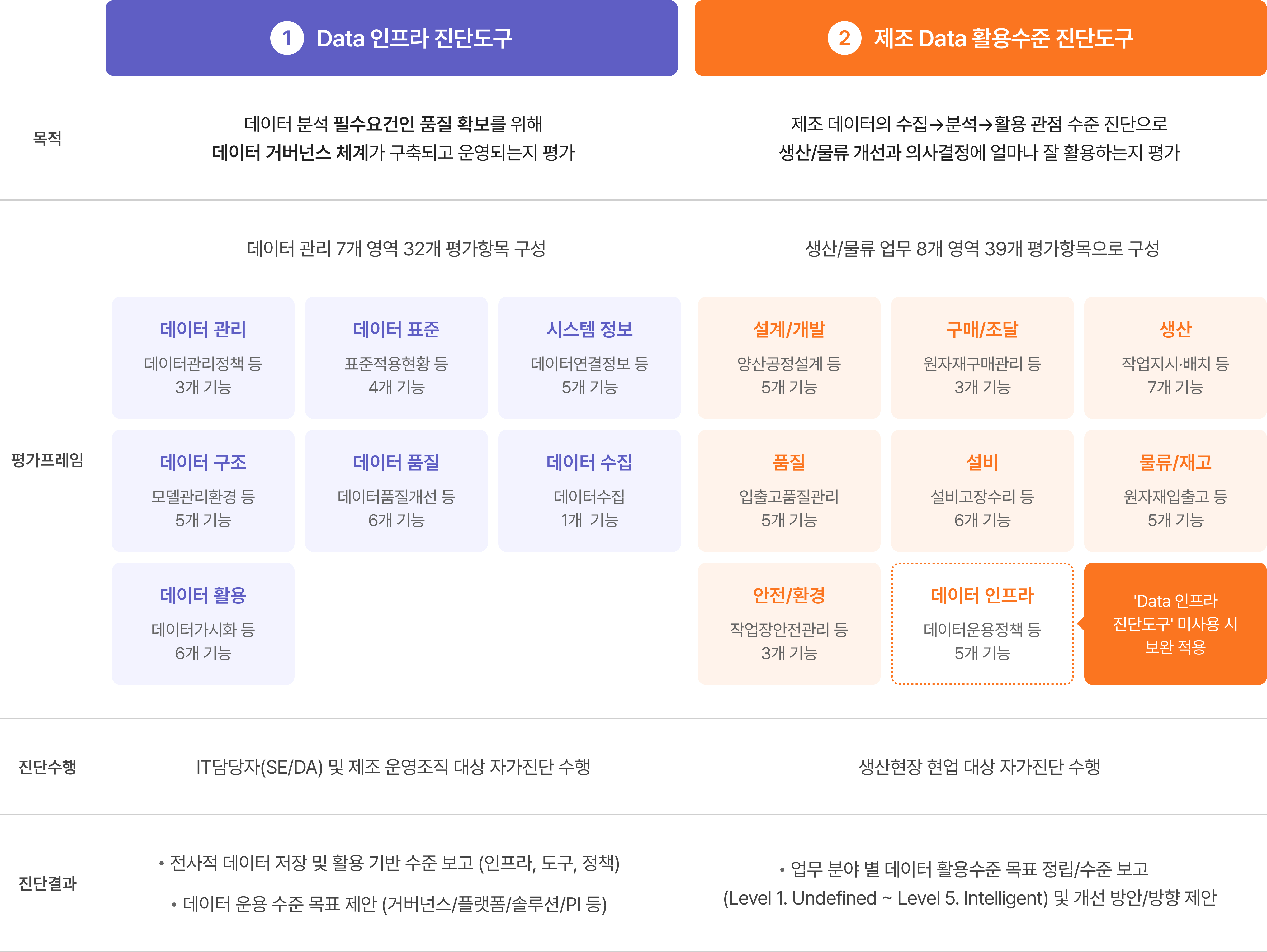 '② 제조 Data 활용수준 진단도구' 2종을 제공합니다. ”