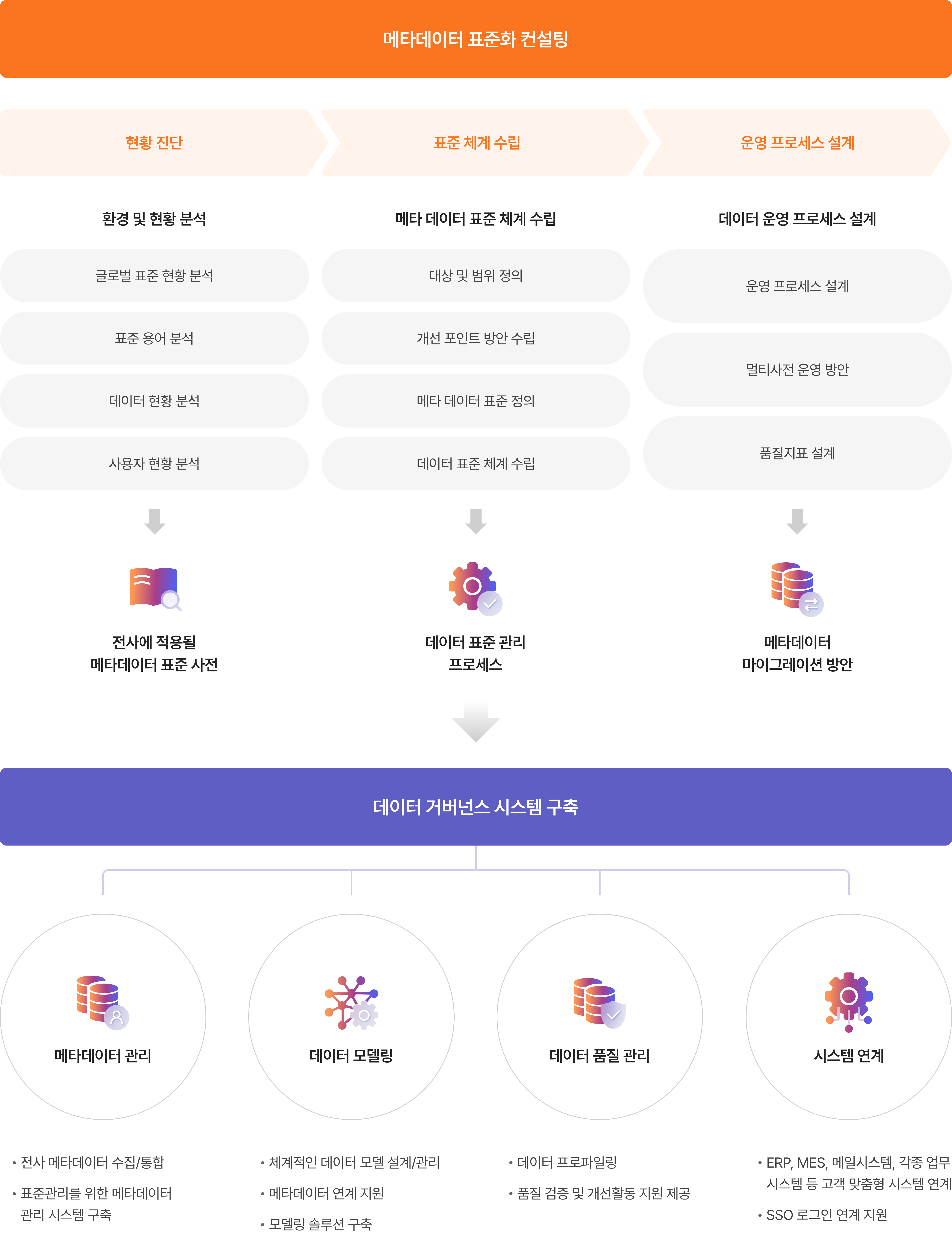 “ 메타데이터 표준화 컨설팅을 통해 전사적 표준체계와 관리 프로세스를 정립하고,