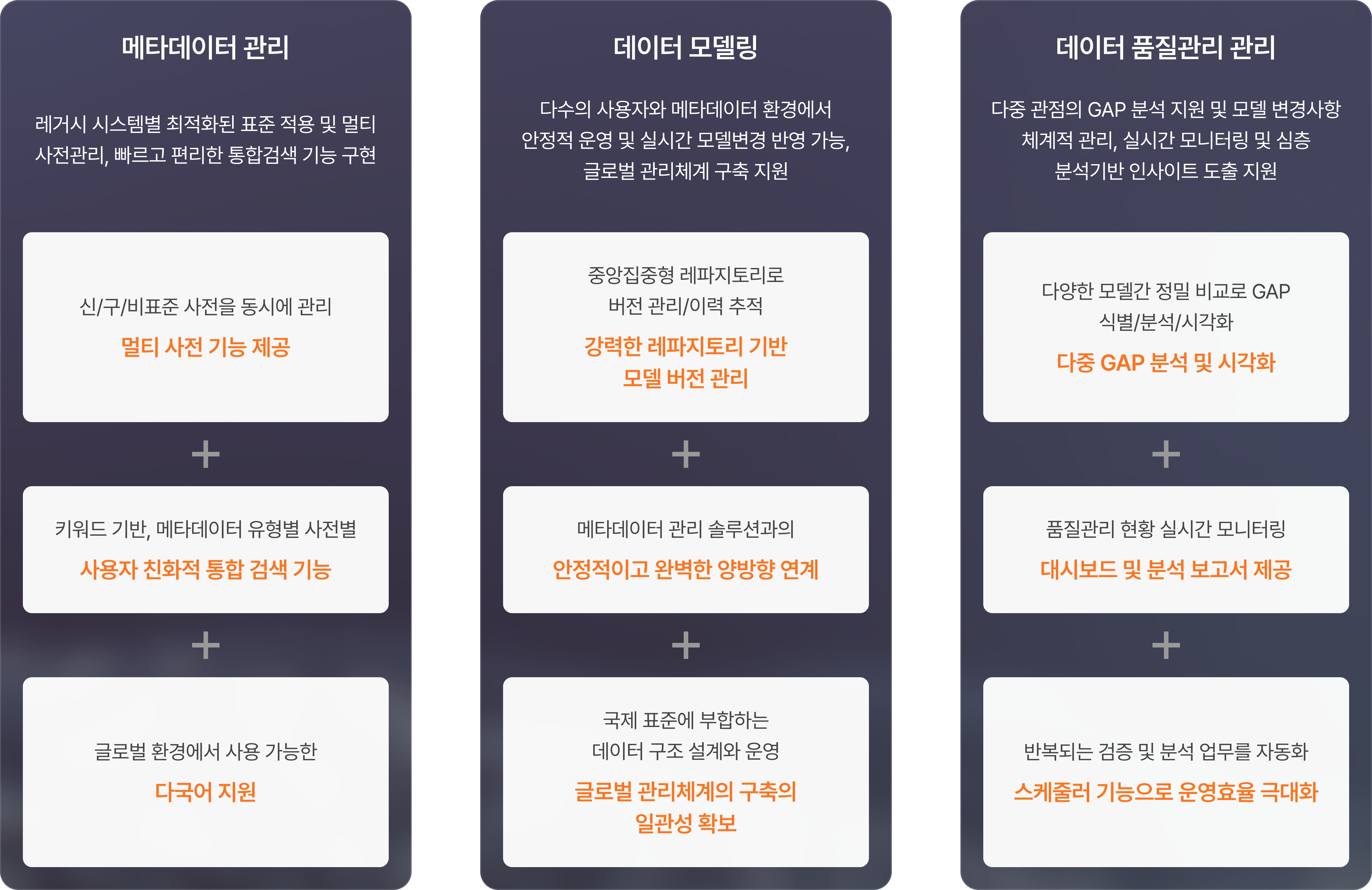 “ 사용자 친화적이고 안정적인 메타데이터 관리, 데이터 모델링, 데이터 품질관리 솔루션 제공으로