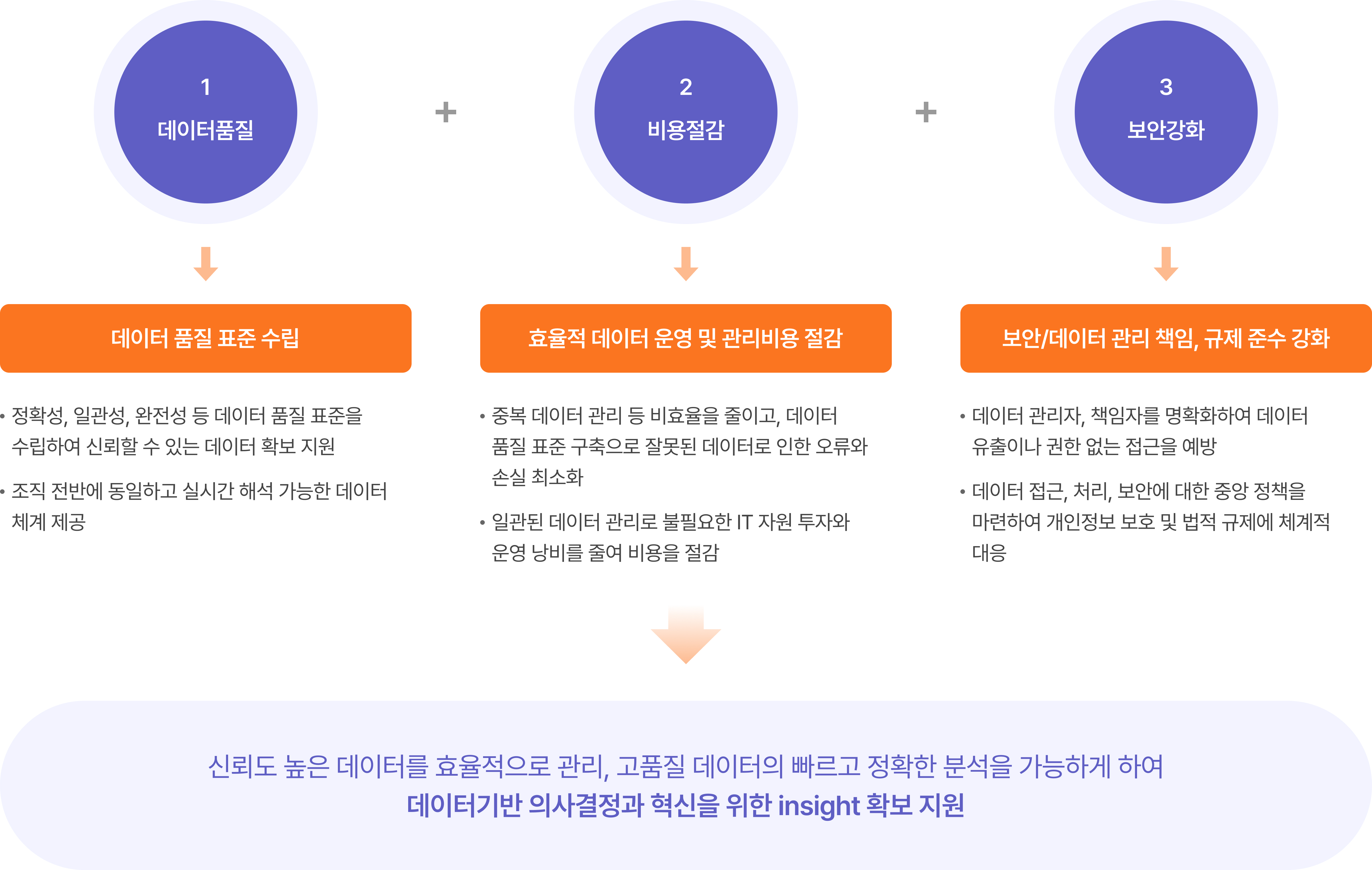 데이터 품질을 제고하고 효율적인 데이터 운영과 보안/규제 준수를 강화할 수 있습니다. ”