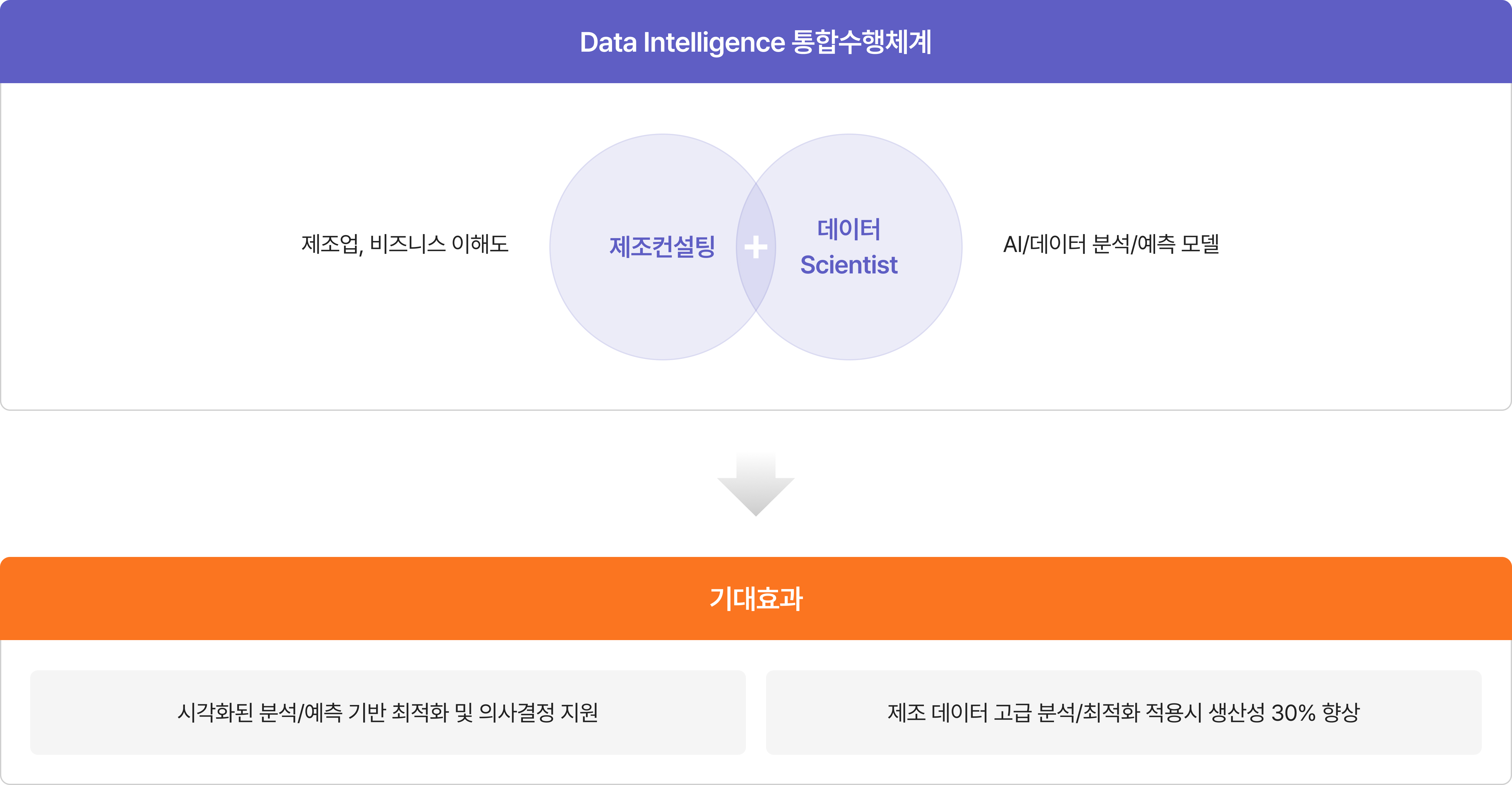 공정 개선, 품질 예측, 자재 최적화 등 전략적 인사이트 도출을 통한 데이터기반 의사결정을 지원합니다. ”