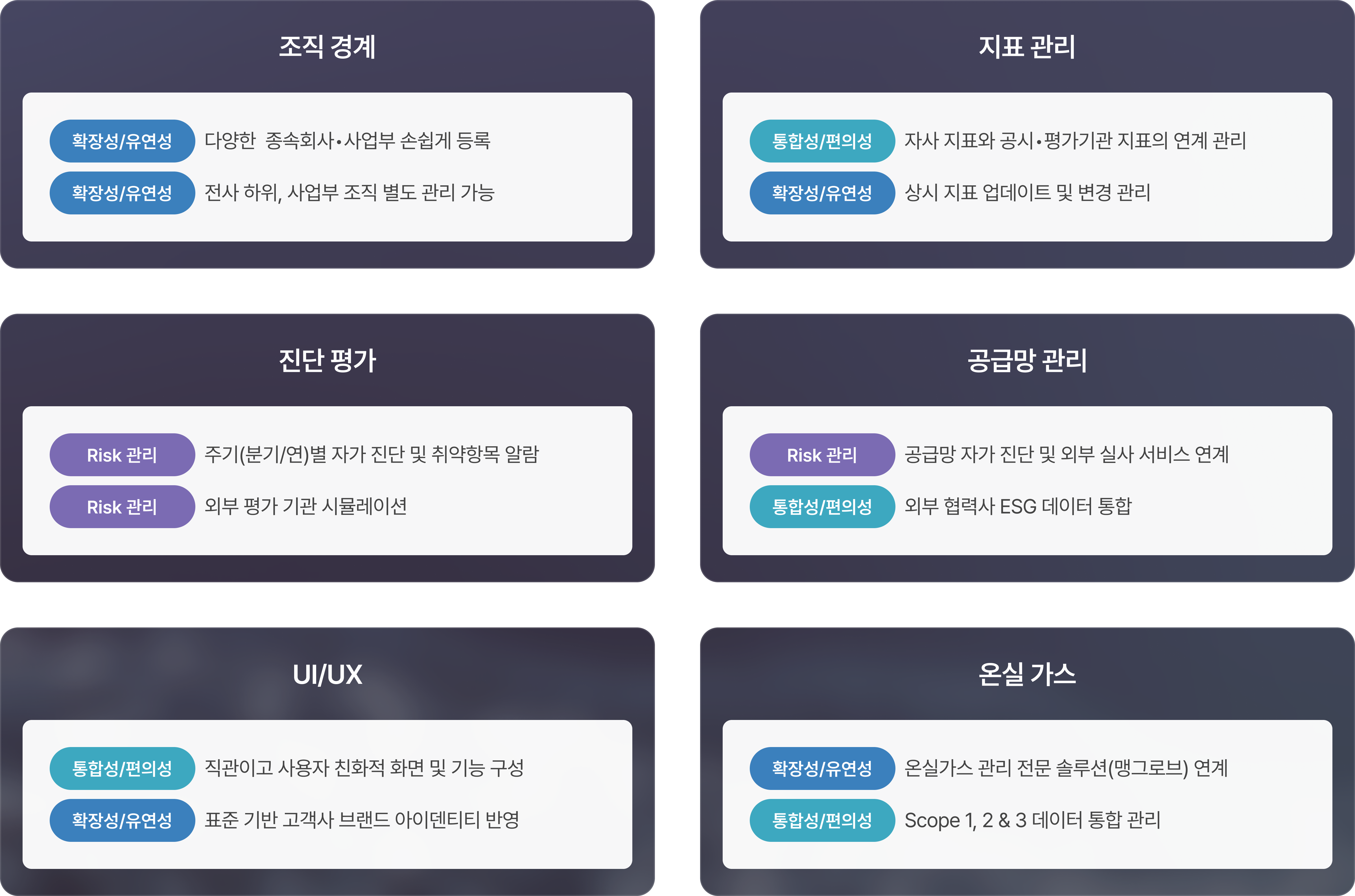 “ 공시/평가 대응, Risk 관리, 공급망 관리 등 ESG 경영관리 업무 전반을 지원하며,