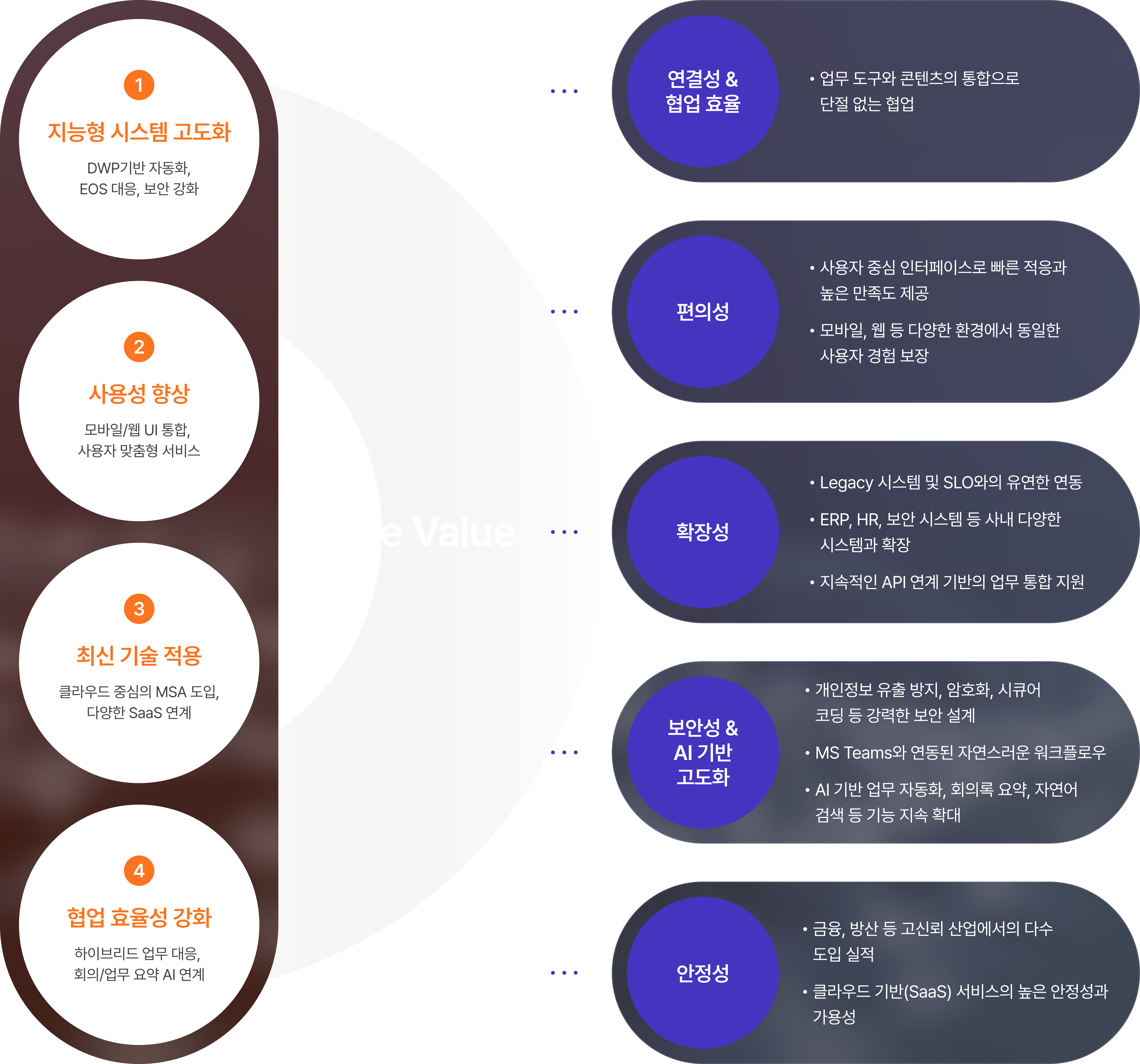 확장 가능한 기술 구조로 고객의 미래형 스마트워크를 완성합니다. ”