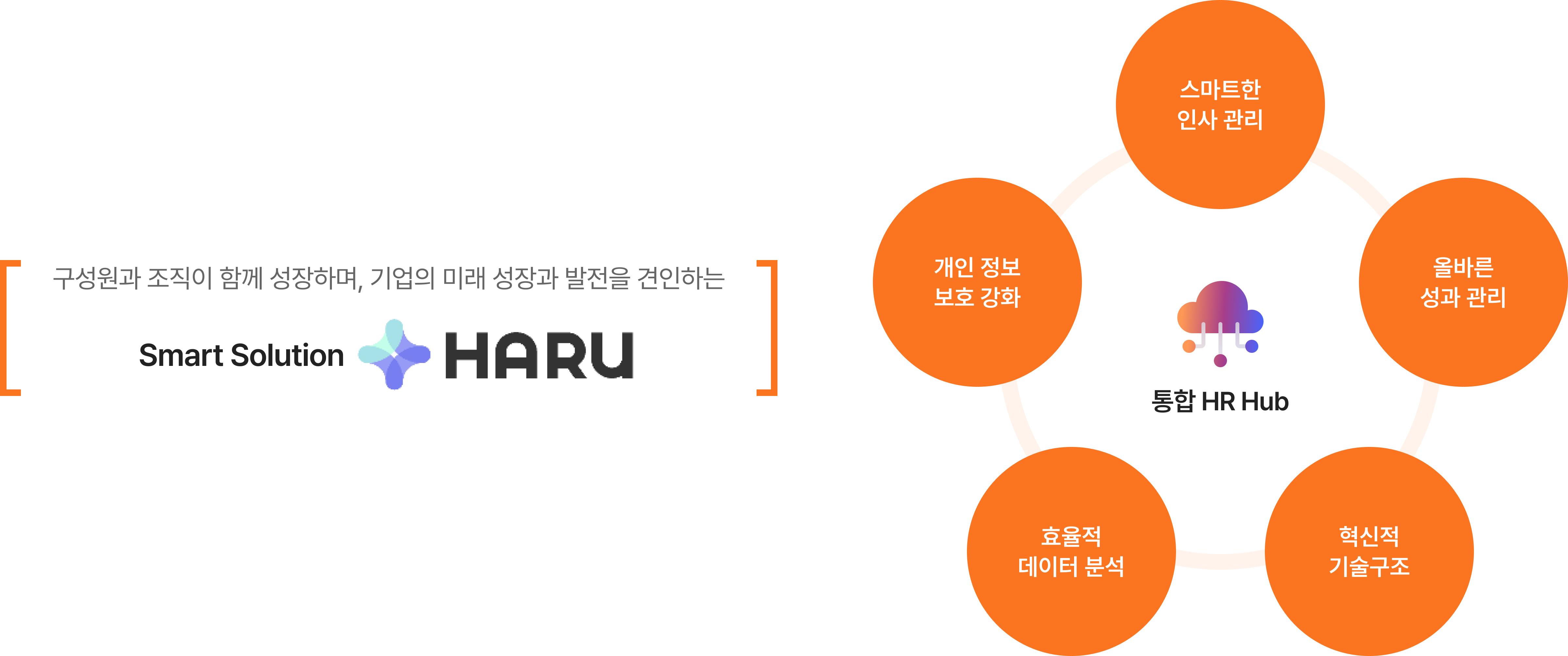 “ HARU는 통합 HR Data-Hub 기반의 클라우드 환경 구성을 통해 고도화된 HR서비스를 제공합니다.