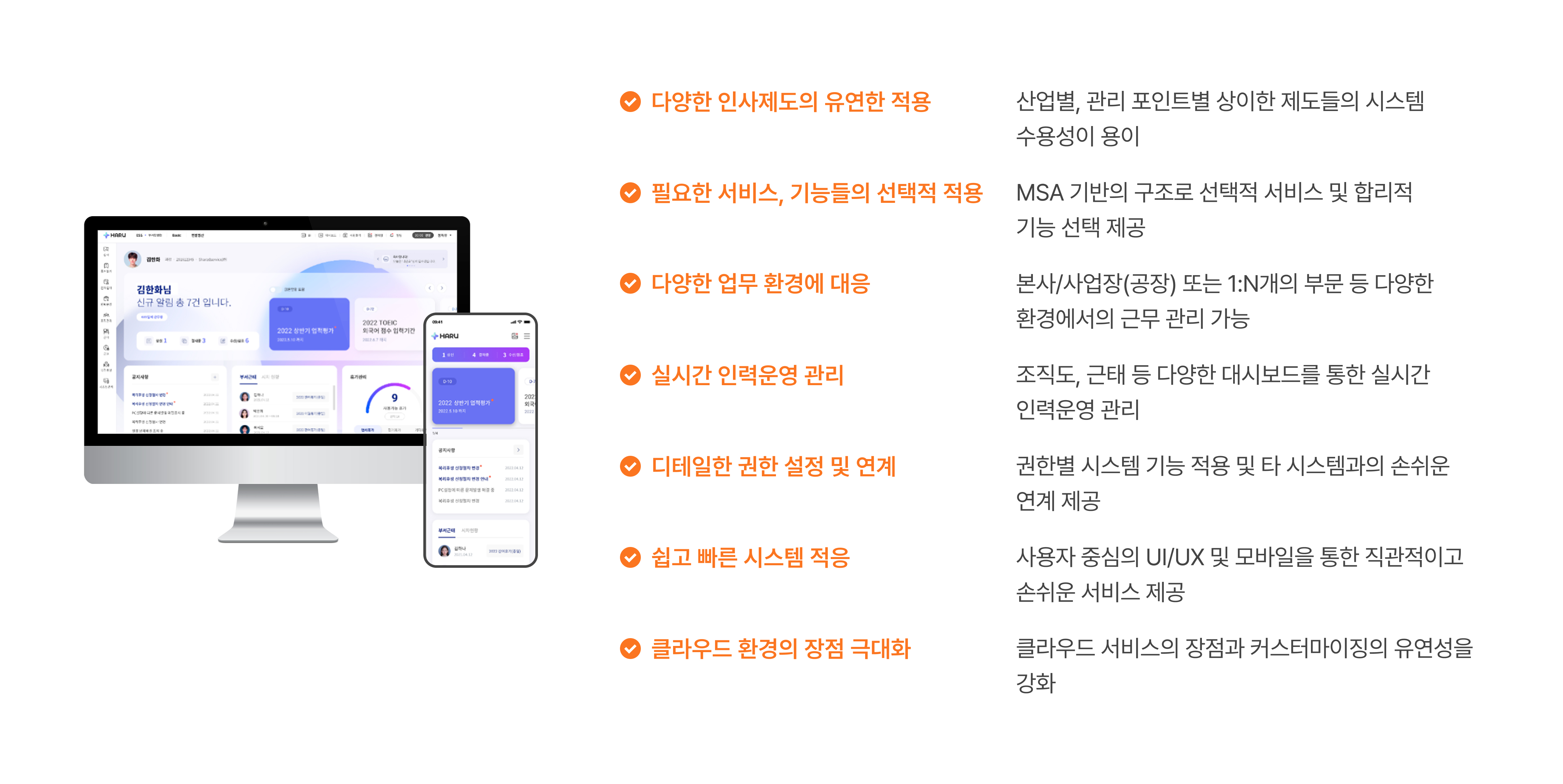 효율적인 HR 업무 문화 정착과 최적의 인사 전략 추진을 위한 견고한 기반을 마련합니다. ”