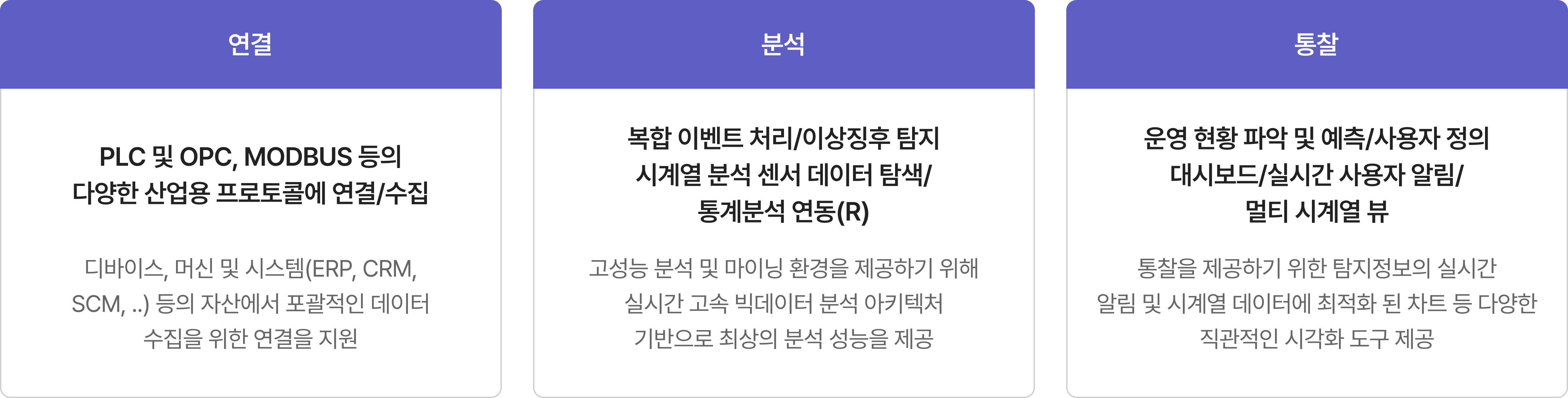 산업 현장의 디지털 전환을 가속화하는 차세대 IIoT 솔루션입니다. 글로벌 표준 기반으로 설계되어 확장성과 안정성을 갖추었으며,