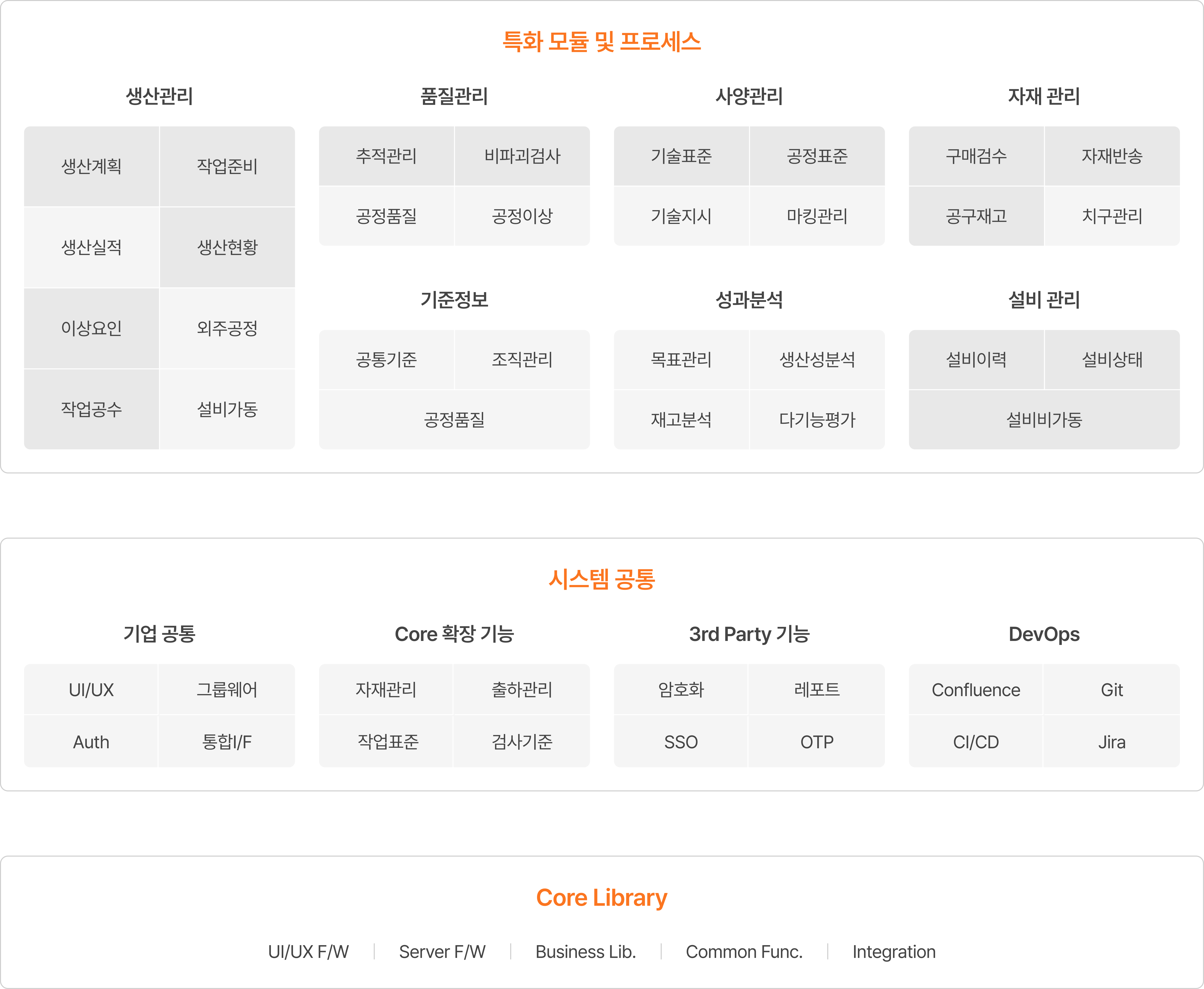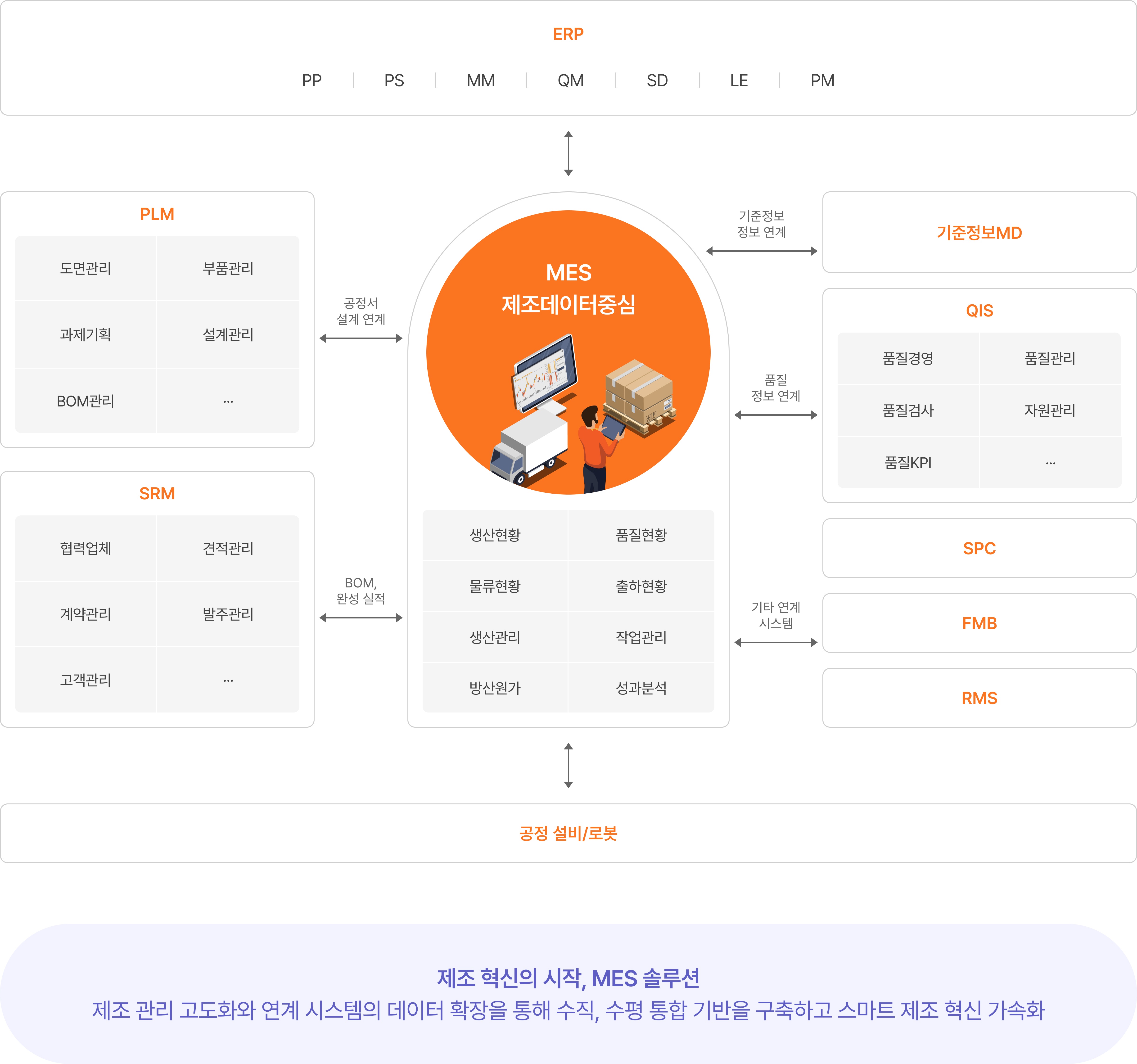MES 는 산업 특성에 최적화된 모듈형 구조를 기반으로, 고객 맞춤형 확장과 해외 사업장까지 지원하는 글로벌 표준 시스템입니다.