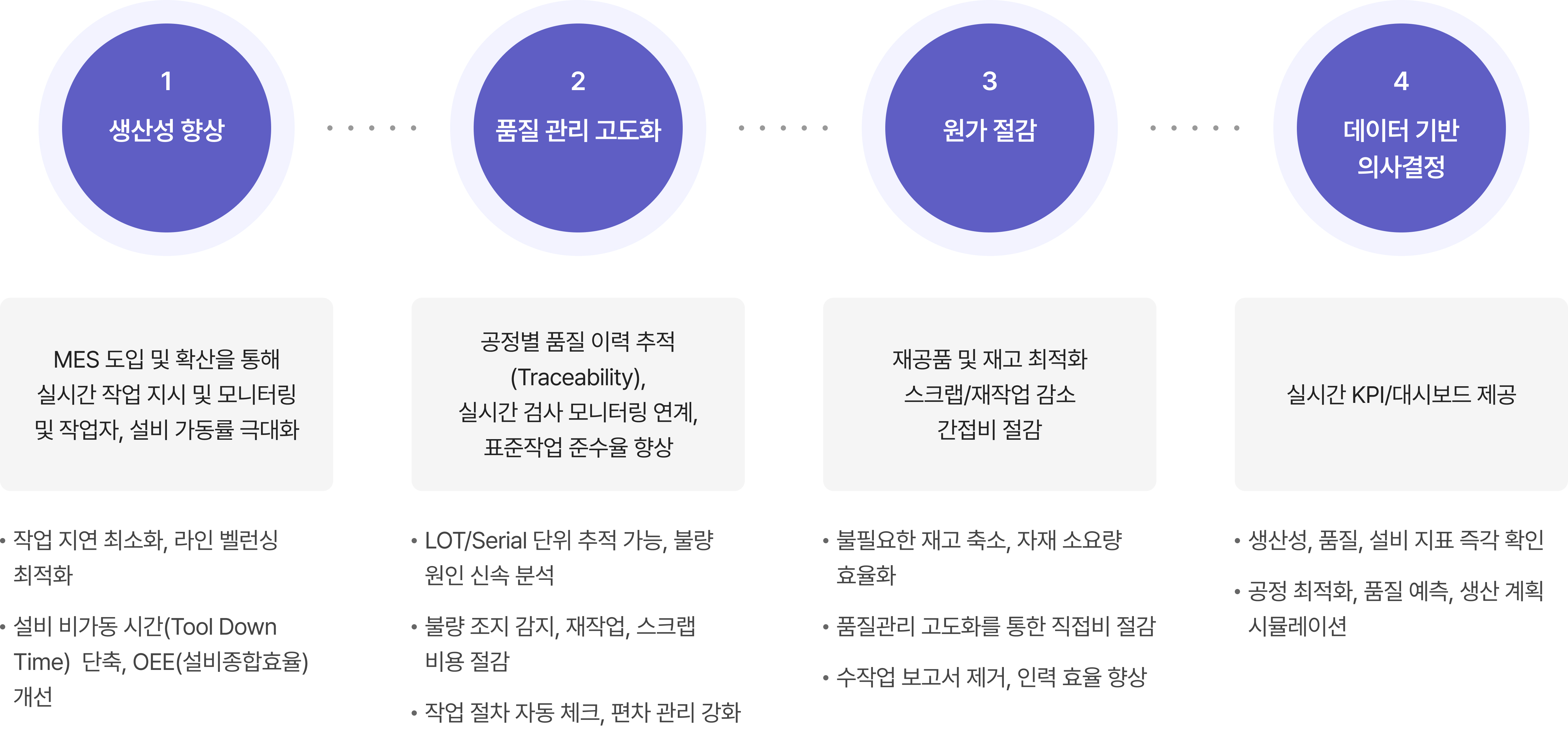생산, 품질, 공정 전 과정을 통합해 경쟁력 있는 스마트 제조 환경을 제공합니다.