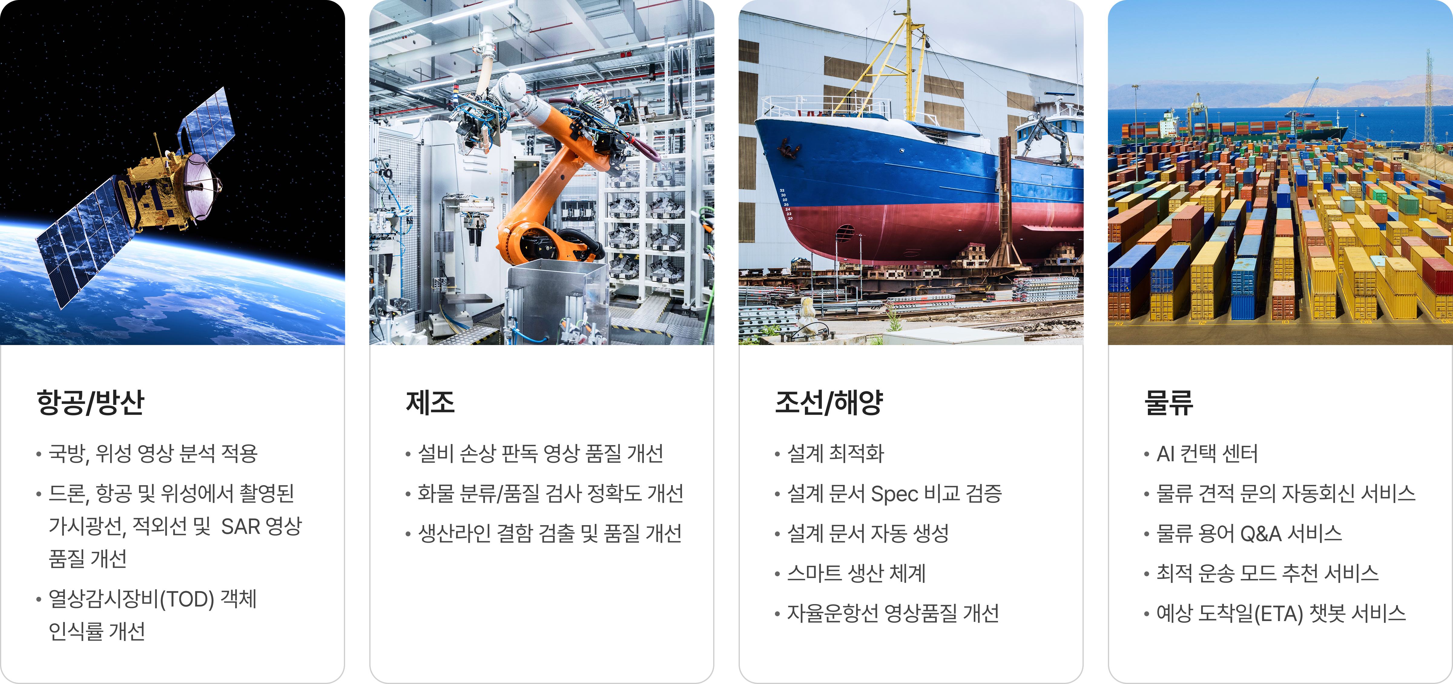 “ 항공/방산, 제조, 조선/해양, 물류 등 다양한 산업 영역에서 고객가치를