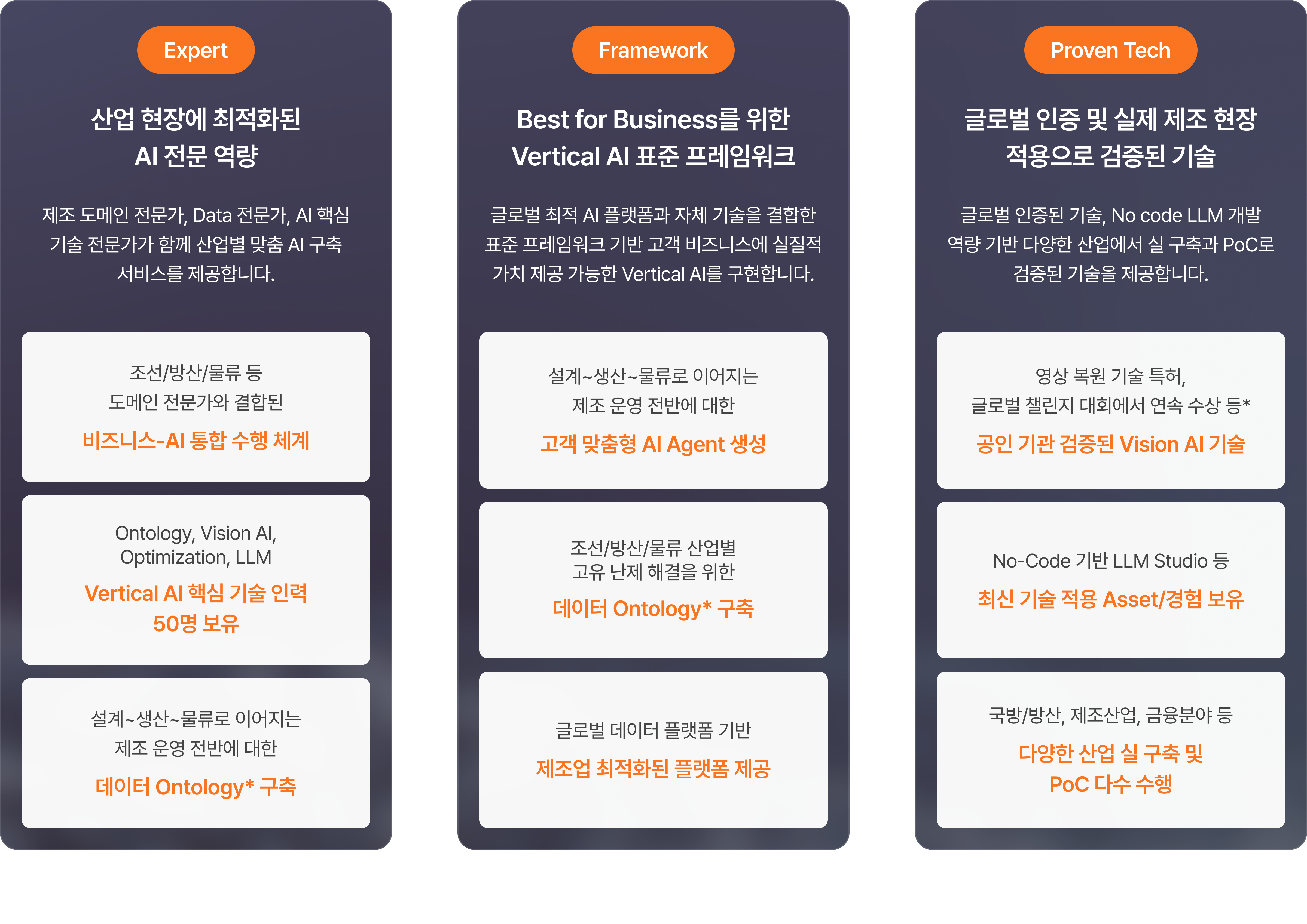 각 산업 현장에 최적화된 Vertical AI를 구축합니다. ”