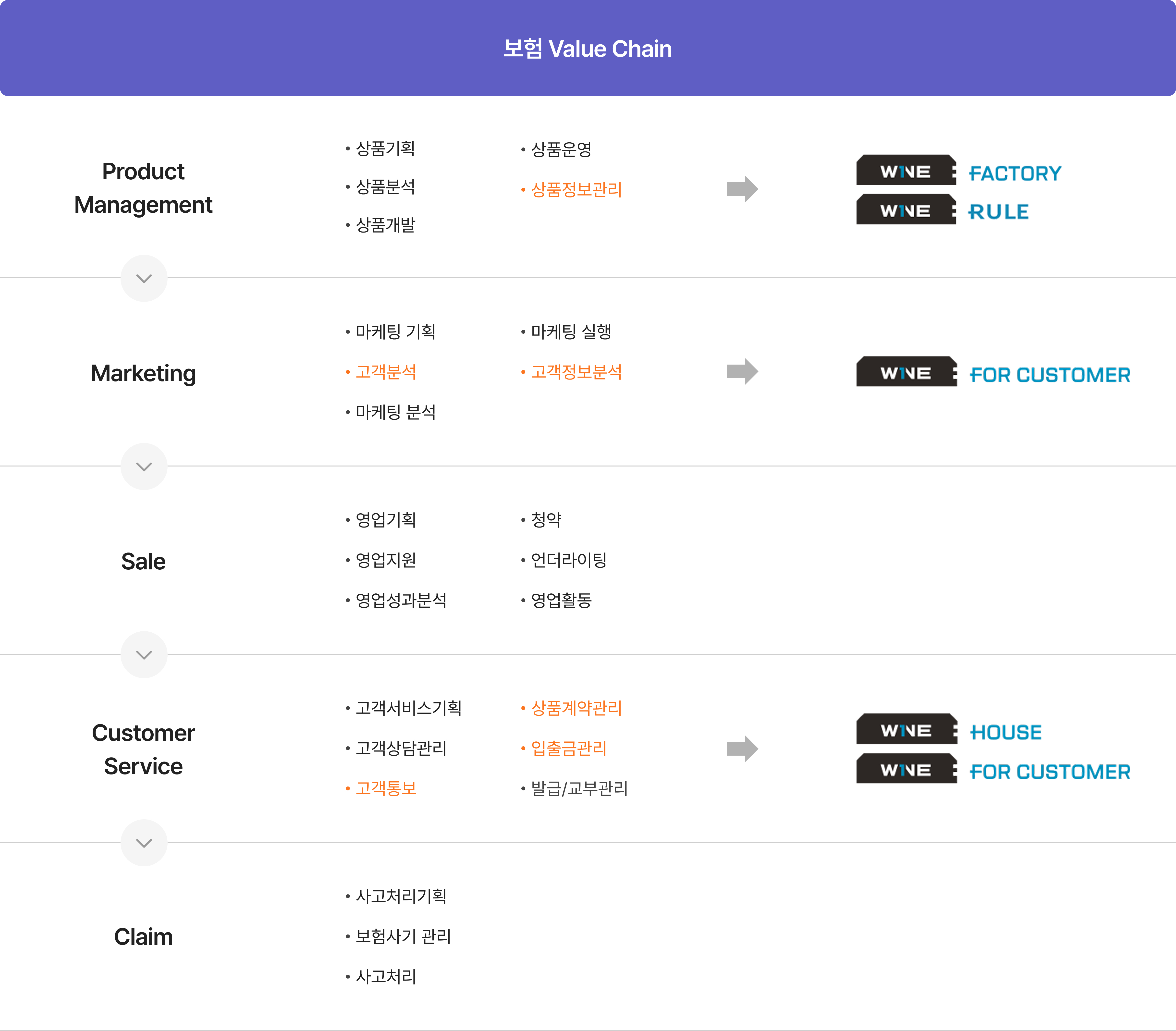“ W1NE SOLUTION은 보험 Value Chain에서 상품 기준 정보