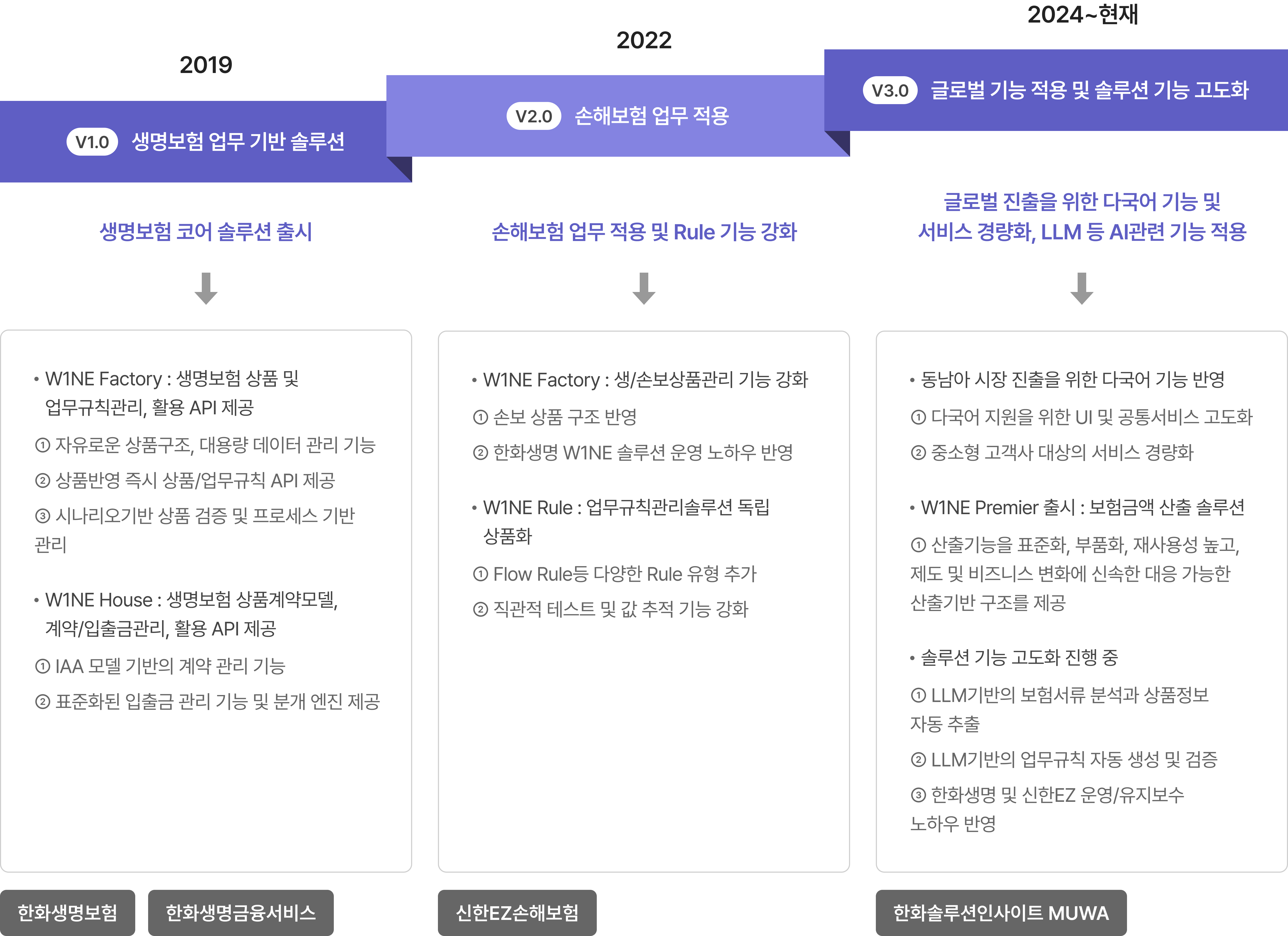 W1NE 솔루션은 국내 보험 업종에서 시작하여 금융 전체 및 서비스 산업으로 확장하여 서비스를 제공하고 있으며,