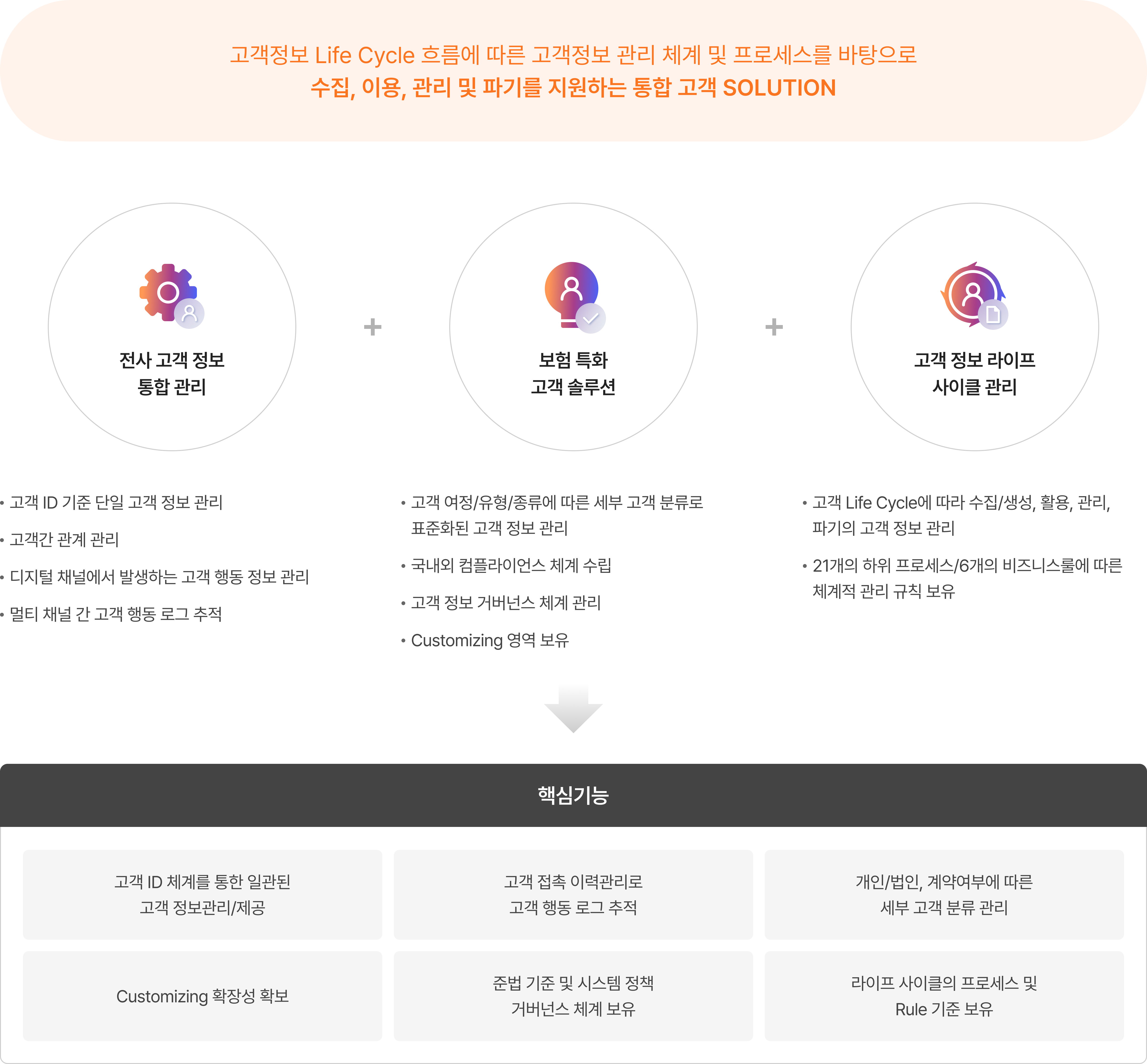 “ 고객 라이프사이클과 비즈니스 프로세스에 맞춘 체계적인 정보 관리와 암호와 기반 보안