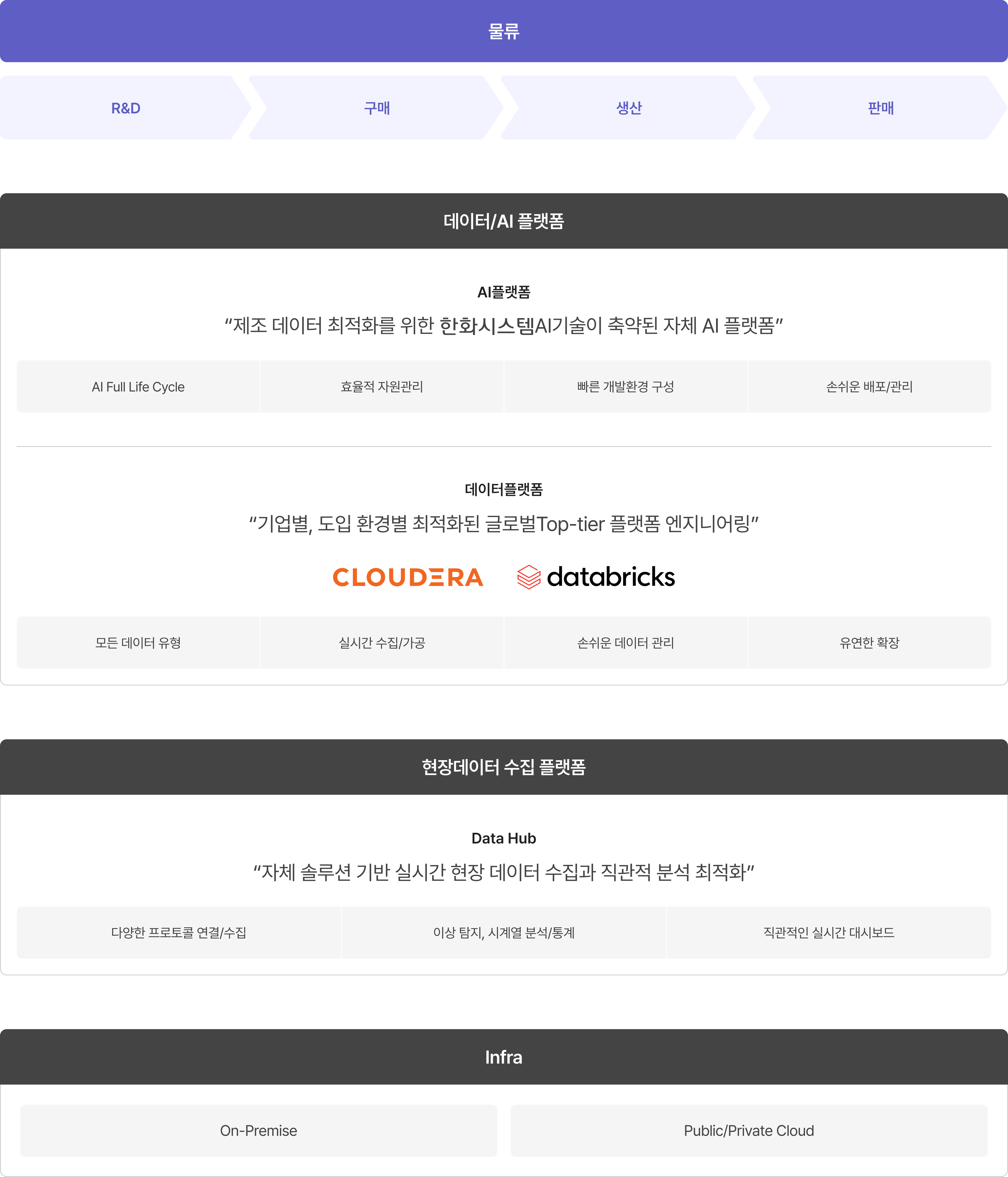 “ 한화시스템은 물류 전문 역량 기반의 진단/컨설팅/구축/운영을 아우르는